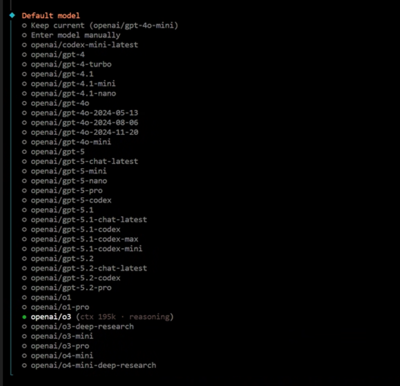 3Agora, selecione o provedor de IA – Por exemplo OpenAI, Gemini, etc).